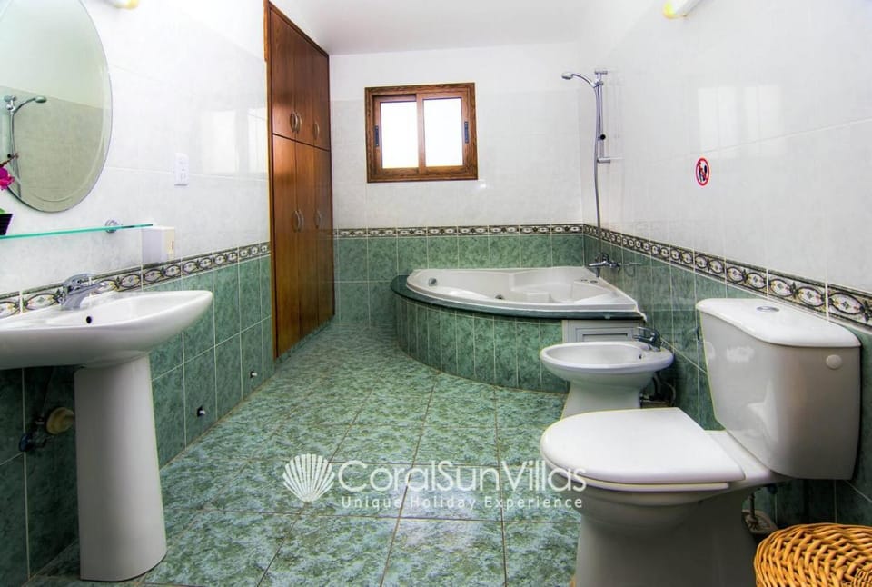 Featuring a garden, Fabulous Villa In Coral Bay Near Beach, Amenities provides accommodations in Peyia. Guests can benefit from a patio and an outdoor pool. Free Wifi is available throughout the property and Laourou Beach is a 18-minute walk away. Leading onto a balcony with garden views, the villa consists of 5 bedrooms. Providing a terrace with pool views, this villa also provides guests with a satellite TV, a well-equipped kitchen with a dishwasher, a microwave, and a fridge, as well as 5 bathrooms with a bath. A car rental service is available at the villa. Tombs of the Kings is 7.2 miles from Fabulous Villa In Coral Bay Near Beach, Amenities, while Markideio Theater is 7.8 miles from the property. Paphos International Airport is 12 miles away, and the property offers a paid airport shuttle service. License Number(s): Cy Gov Licence 00024