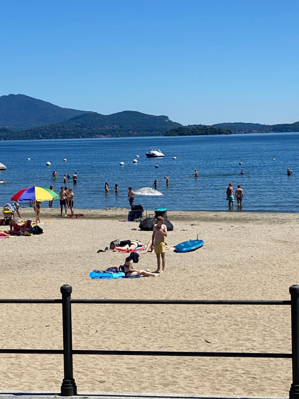 De hartelijkheid van de eigenaar. Het appartement was schoon en alles was aanwezig. Er stonden verschillende drankjes klaar in de koelkast, koffiebonen maximaal gevuld in de koffiemachine en zelfs een fles prosecco van het huis. Alles wat je maar kan bedenken is aanwezig. Er is een groot zwembad en een voetbalveld met goaltjes. Het zandstrand van Lago Maggiore is aan de overkant van de weg