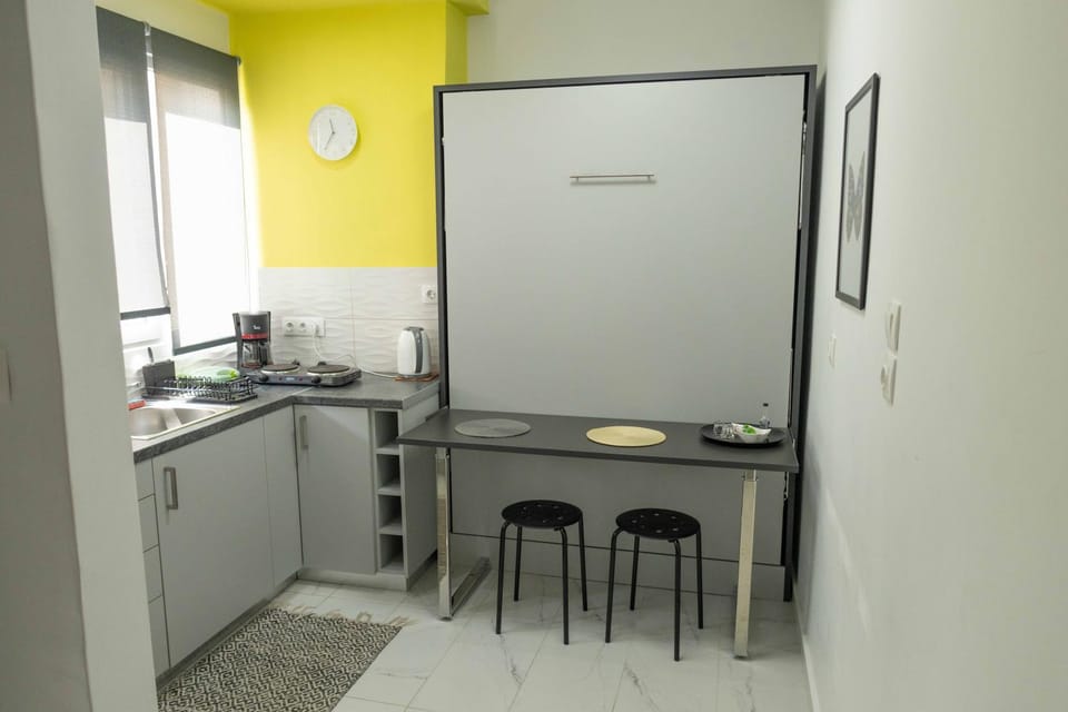 Posizione comodissima, nel quartiere plaka, ma silenziosa. Appartamento pulitissimo, con anche un piccolo omaggio, decorazioni natalizie alle finestre, 2 biscottini e qualche caramella, the e camomilla, ciabatte, prodotti da bagno, doppi cuscini nella camera, apprezzatissimi! Host disponibili E cortesi. Consigliatissimo anche se più adatto a 2 persone, che a 4 come noi, ma dovevamo solo dormirci e lo sapevamo!