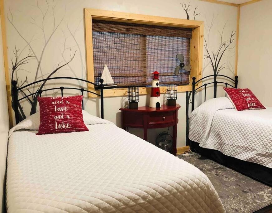 It was so peaceful! The cabin in small but perfect for a getaway. Honestly, I could live there! It's well stocked with kitchen and bath items. There was water and ice for me when I got there. There is also a grill and utensils for it, but I didn't use it. The place was very clean and cozy. When I got there it was raining lightly. It was so relaxing sitting on the swing in the screened in porch. There is a binder with information on places to eat and things to do in the area. I did hear a little noise the following morning which Im assuming was a boat. It's right behind the marina.