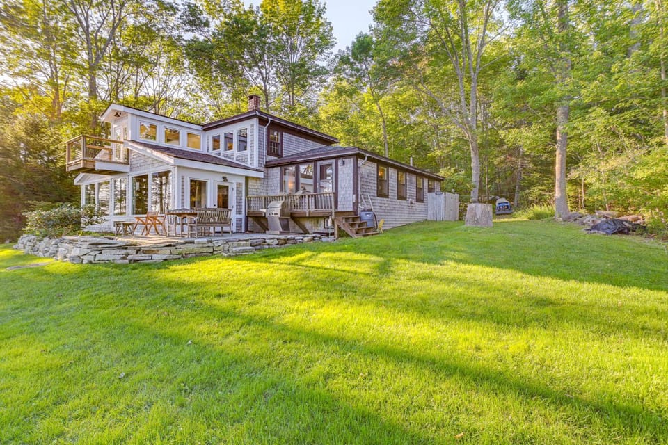 Experience vacation in Lamoine with our House, Oceanfront Private Beach! Family friendly, Multi-Generational House by Acadia! . Enjoy amenities such as Air conditioning, Dryer and Fireplace, and more.