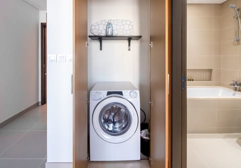 *The entrance to this building is shared with other guests – the facilities like the gym, swimming pool, communal lounge and children's area are also shared *Although there isn't a desk here, the dining table doubles as a laptop-friendly workspace if you need to work from home *There's a chance you may hear noise from the marina *One on-site parking space is provided, which is ideal if you plan on driving – just be aware that the traffic in the garage can get busy during the evenings *Upon arrival, you'll be able to check yourself in with a smartlock *Your host may own multiple apartments in this building, so the exact view, layout and furnishings might vary from the photos
