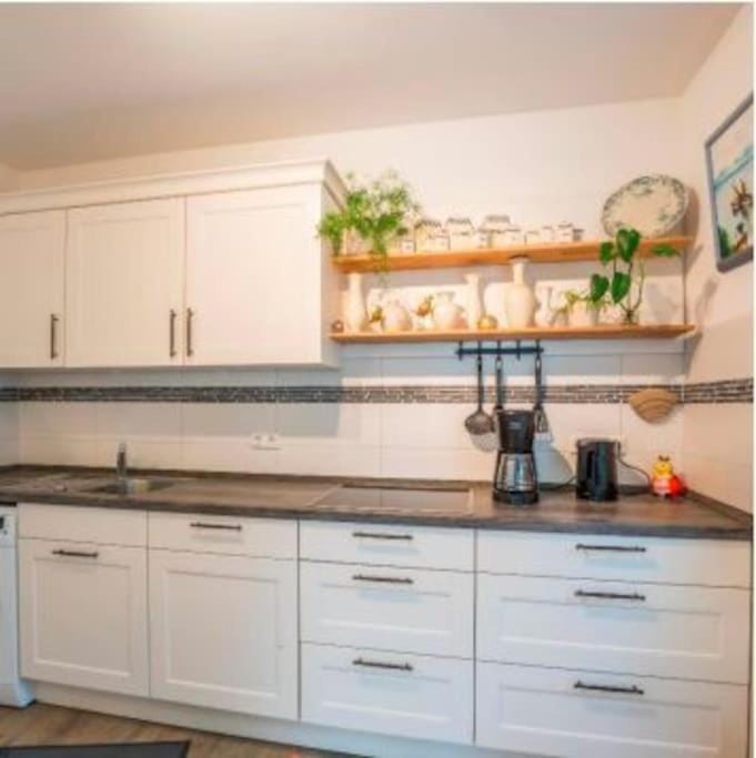 Die Küche ist echt gut ausgestattet und hatte alles was man braucht: Kühlschrank, Gefrierschrank, Spühlmaschine, Ceranfeld, Backofen und Mikrowelle. Sogar eine Waschmaschine. Wasserkocher, Kaffeemaschine und ein Toaster.
