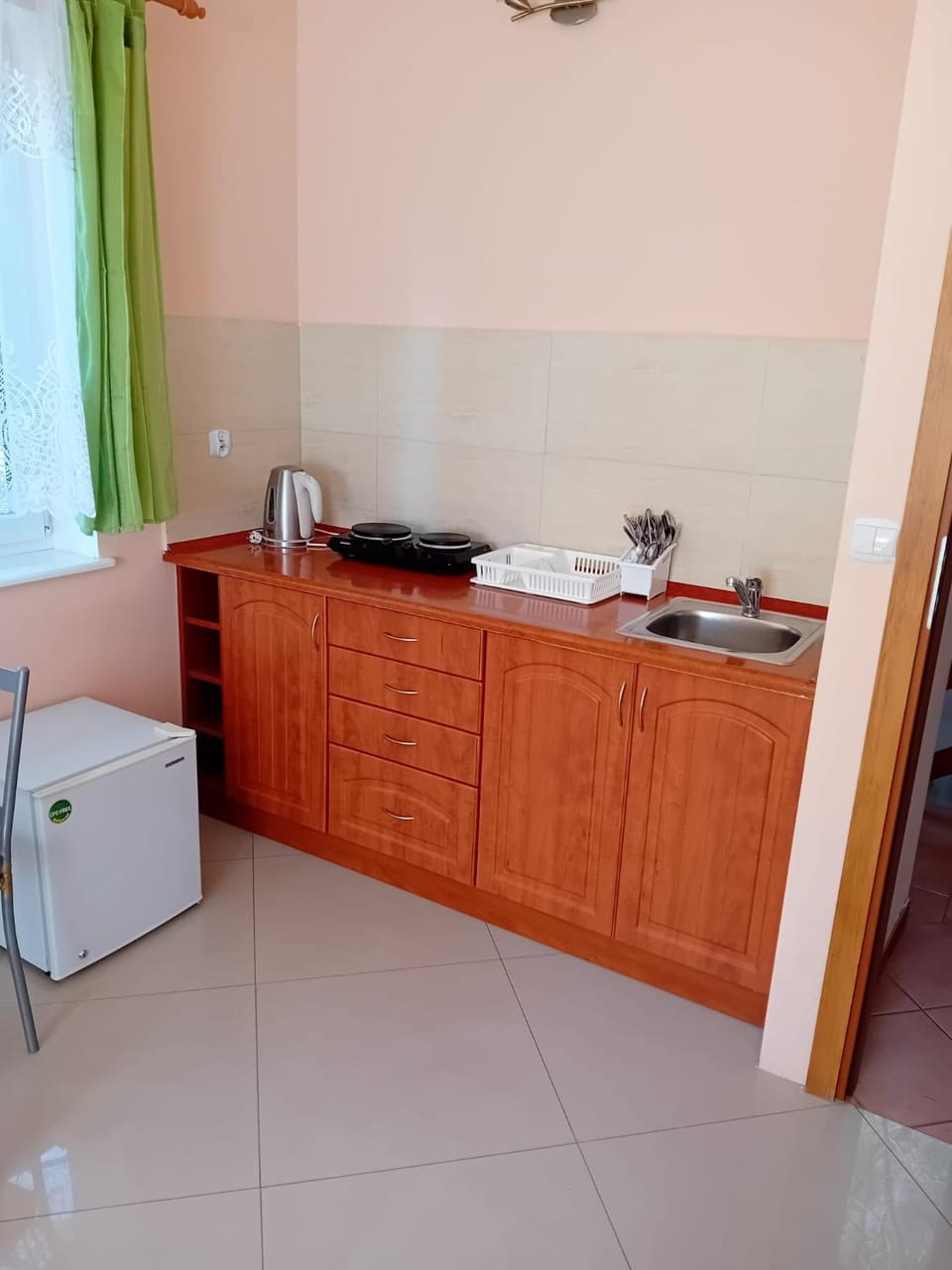 Bardzo nam sie podobało, 2 osobne pokoje, w tym jeden z aneksem plus łazienka na pietrze.Czyściutko i wyposażenie wystarczające na urlop.Lokalizacja też super, na poboczu a jednocześnie blisko nad morze i do centrum. Byliśmy też zadowoleni za możliwość przyjazdu z 2 psiakami.Właściciele uprzejmi, polecam wszystkim.