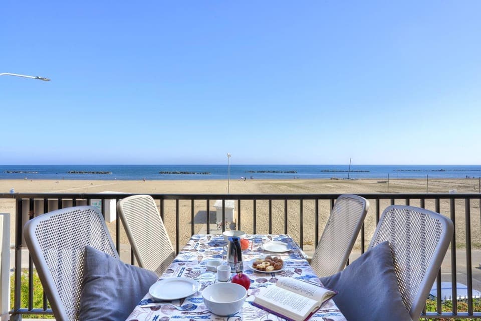 Toplocatie, direct aan het strand. Groot terras met prachtig uitzicht op zee.