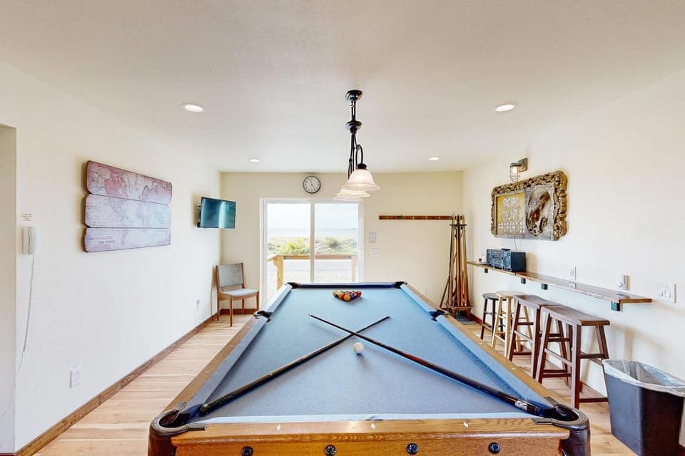 There was a lot of activities to do in this house, darts, a pool table, a lot of areas to gather and spend time with a large group. The beds were very comfortable, the kitchen was well stocked and easy to cook in with plenty of utensils. Everything was labeled so it wasn’t hard to find anything. There was a ton of extra blankets and pillows to fit everyone’s comfort preferences, beautiful views, tons of movies. The instructions on the Vacasa app were very straightforward and I loved that I could add all of the other adults staying so we all had access to the information, less playing monkey in the middle and more just being able to relax without stressing about information.