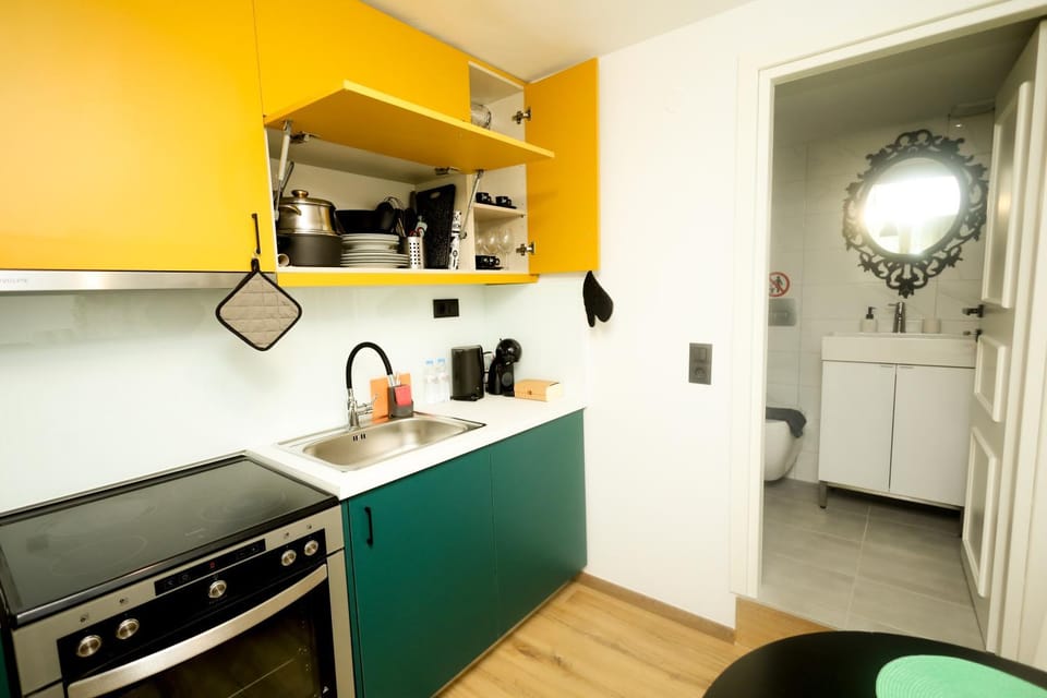 Goed en centraal gelegen appartement. Fles rosé op tafel bij aankomst.Badkamer en bed een beetje klein voor ons( man 2 meter lang)