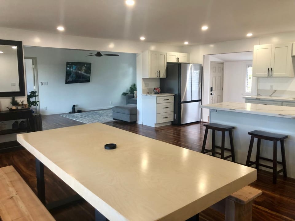 This was a beautiful house and a quaint neighborhood, and a very local, Hawaiian feel. The interior of the home as well appointed and comfortable. Great indoor and outdoor lounging furniture. Even a small view of the water from the living room. Also, we managed to stay cool with all of the fans on and the windows open. Accessing the apartment was really easy and instructions and correspondence were great! We loved Makaha beach and all of the delicious local food - Aloha Poke is awesome!