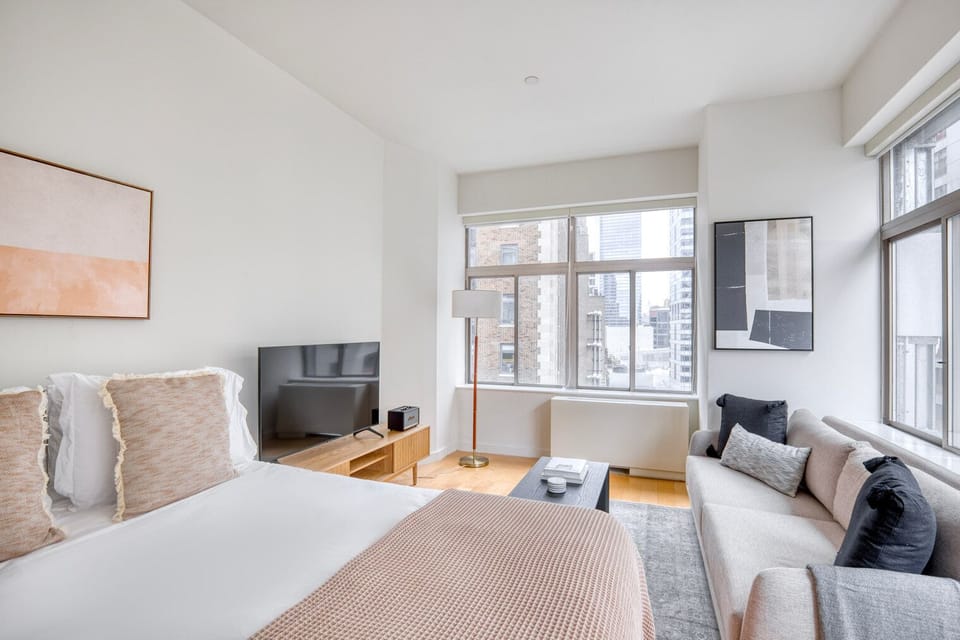 Discover the best of New York, with this studio apartment in Financial District with views over the city. It’ll be easy to simply show up and start living in this furnished apartment with its fully equipped kitchen, living room, and our dedicated, on-the-ground support. (ID #NYC1095)