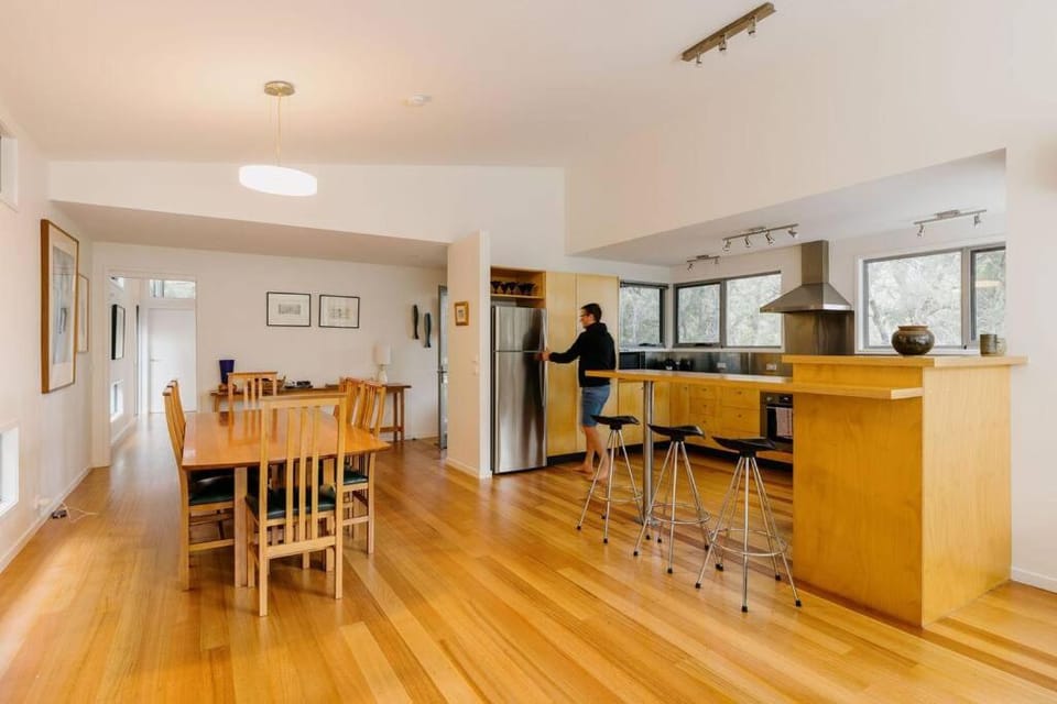 Unique location within the National Park. The design of the house is sympathetic to the setting, surrounded by casaurinas, at the foot of Mt Amos. Walking distance to the start of the Wineglass Bay and Hazards Beach tracks. The house is comfortable, good heating, well equipped kitchen, comfortable beds, and lots of natural light. Most of the surrounding houses were empty while we were there so very quiet.