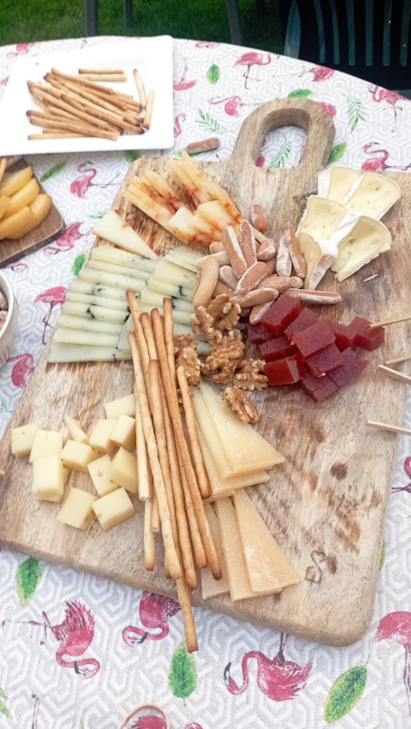 La casa en general, el patio trasero con la barbacoa así como el comedor donde pudimos estar cómodos las dos parejas con cuatro niños.