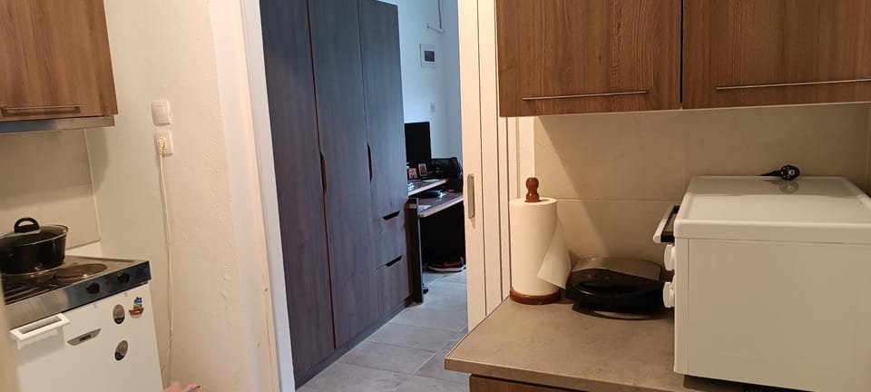 The apartment itself seems to be an adapted shop, very basically equipped, without any special style. It's located on the ground floor, facing a sidewalk and a busy street. Due to poor insulation and passing cars and motorbikes (literally all night long), it felt like the cars were passing right in our room. Consequently, we didn't sleep for 3 nights in a row. The most inappropriate thing about the apartment is direct access from the street to the only bedroom (with a small kitchenette separated by a folding door, and the bathroom entrance beyond that). Since there is an entrance door and only one window that faces the street, it was not appropriate or safe to keep them open, especially at night. Additionally, the stuffiness and heat made sleeping problematic (and sleeping with the air conditioner on, blowing directly on the bed, is also unpleasant)"