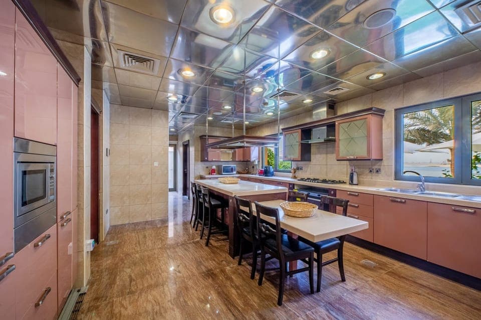Located on the luxurious island of Palm Jumeirah, this lavish villa is fit for groups looking for a taste of the high life. Beautifully presented throughout, there are many areas to socialise – from in the theatre and bar area to around the poolside or private beach. One of its highlights is the home’s great location – just under two-kilometres will take you to Palm Jumeirah’s remarkable leisure attractions and fancy al fresco dining options. We recommend hiring a car to explore Dubai further – you can reach the mainland in fifteen-minutes for world-class shopping and a wide selection of beaches.