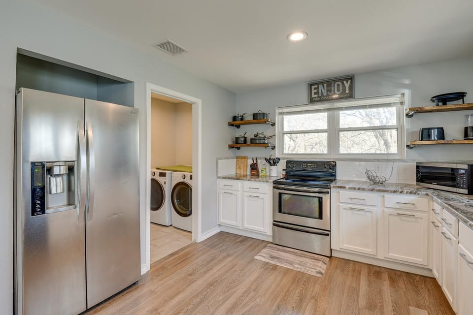 Indulge in a peaceful retreat at Modern Flower Mound Home < 2 Mi to River Walk, our elegant House in Flower Mound. Enjoy amenities including Air conditioning, Balcony/Terrace and Dryer, and more.