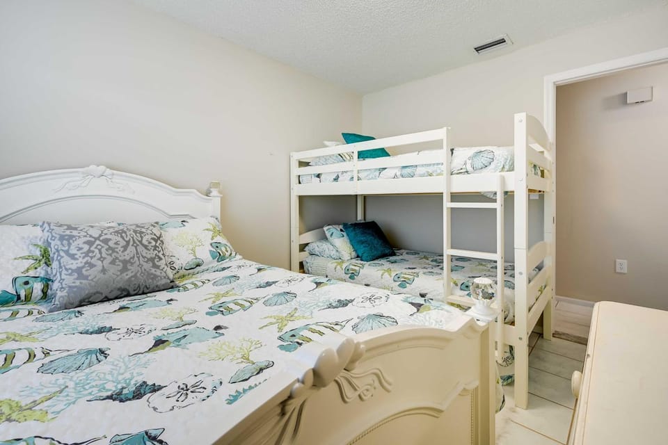 The screen-enclosed pool was very nice! They even some pool floats and toys, and an abundance of beach towels in the screened in porch. Almost every need you may have during your stay was included in the fully furnished house: dishes, pots and pans, toiletries, laundry supplies, plenty of toilet paper. The beds were very comfortable, and having the two bathrooms was very nice!