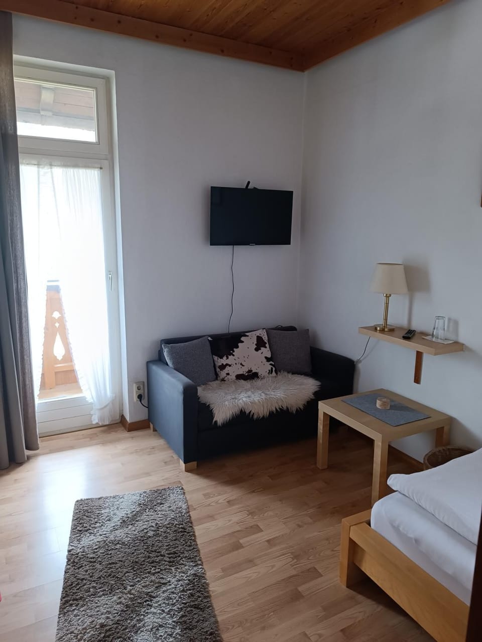 Mein Zimmer befand sich im ersten Stock. Es war zwar klein, aber mit allem ausgestattet, was man braucht: ein Einzelbett, ein Kleiderschrank mit vielen Schubladen, ein kleiner Tisch, ein Sofa sowie eine Terrasse mit herrlichem Blick auf die Berge. Das Bett hat recht stark geknarrt, was mich jedoch dank meiner Ohrstöpsel nicht gestört hat. Im Flur stand ein gemeinschaftlich genutzter Kühlschrank zur Verfügung, in dem man eigene Lebensmittel lagern konnte. Direkt neben meinem Zimmer befand sich der Frühstücksraum. Ich hatte um ein ruhiges Zimmer gebeten – und das war es auch, nur nicht während des Frühstücks. Wer also gerne länger schläft, sollte entweder Ohrstöpsel mitbringen oder ein Zimmer in einer anderen Etage wählen. Das Frühstück war einfach, aber vollkommen ausreichend: Brot, Orangensaft, Tee, Kaffee, Käse, Wurst, drei Sorten Marmelade, Joghurt, Müsli, Gurken, Tomaten, Äpfel, Pflaumen und ein Kuchen. Auf Wunsch konnte man auch Eier bekommen. Das WLAN funktionierte einwandfrei. Toll finde ich die Gastgeberin Sabine. Sie war nicht nur herzlich und freundlich, sondern hat mir auch einige wirklich nützliche Tipps zu den Wanderwegen in der Umgebung gegeben. Mit jeder Frage konnte man sich an sie wenden und bekam sofort Hilfe. Eine der besten Gastgeberinnen, die ich je erlebt habe.