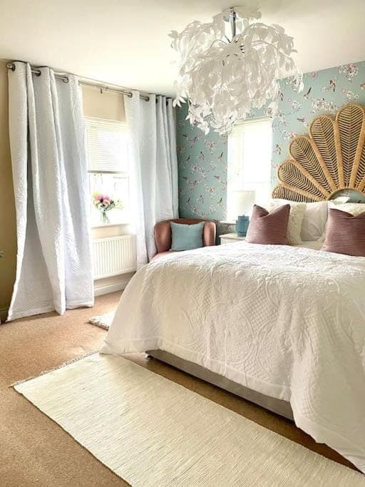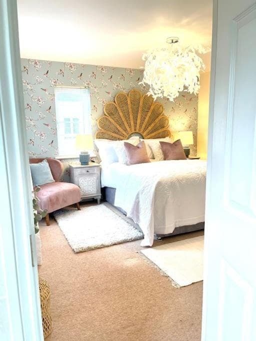 A well thought out, comfortable new build ideal for our stay. Very spacious bedrooms (3 doubles and a single) & living areas (Kitchen diner, Living room and snug). Very close to local amenities.