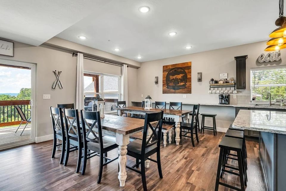 Looking to create some memories in Ridgedale? Look no further than our House, Themed new 7 bdrm home w/ lake views, hot tub, fireplace, fire pit, & game room. Enjoy top-rated amenities including Pets allowed, Family friendly and Non-smoking, and more.