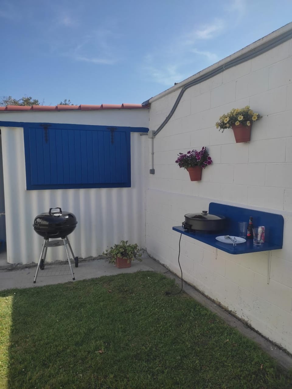 Also beautiful garden with plenty of seating, some shade and an indoor area, very well equipped, and also had a separate fridge freezer. BBQ, hot plate, plates, cutlery, glasses, so no problem with taking things up and down stairs, apart from.washing them up.