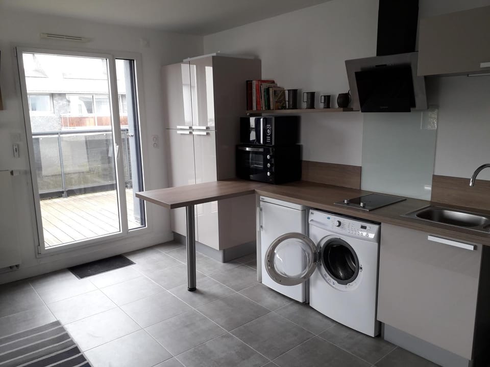 2 pièces avec accès piscine intérieure is located in Larmor-Plage, just a 10-minute walk from Plage de Port Maria and 3.7 miles from Football Club Lorient. This property offers access to a terrace, free private parking, and free Wifi.