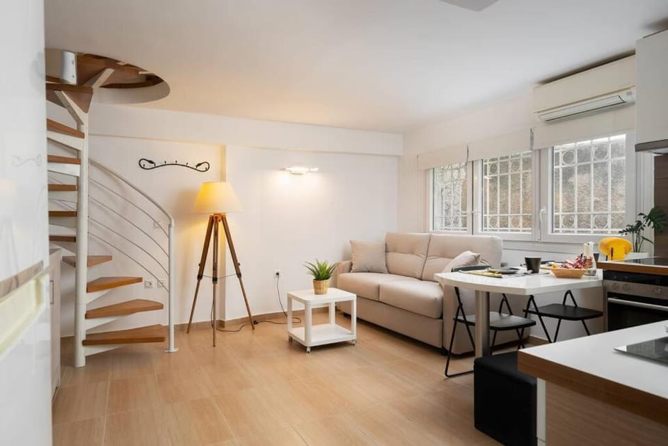 Cute, modern flat in a central location. Easy to go out for food or to get to the metro/main attractions. Ground floor entrance was good with our pushchair. Well supplied kitchen. There was a small sofa chair in the bedroom which our son slept on but there was also a sofa bed downstairs. Good air conditioner in the kitchen/living room. Nice toiletries in the bathrooms.