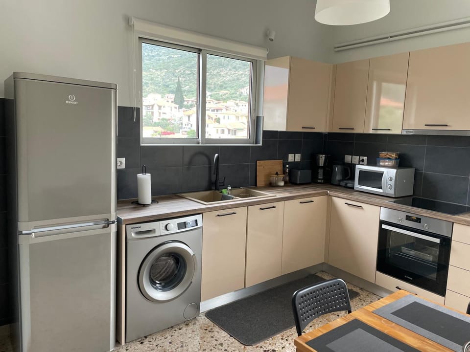 Die Aussicht von der Wohnung auf Leonidio und die umliegenden Berge sind wunderschön, die Wohnung war in einem guten und sauberen Zustand.