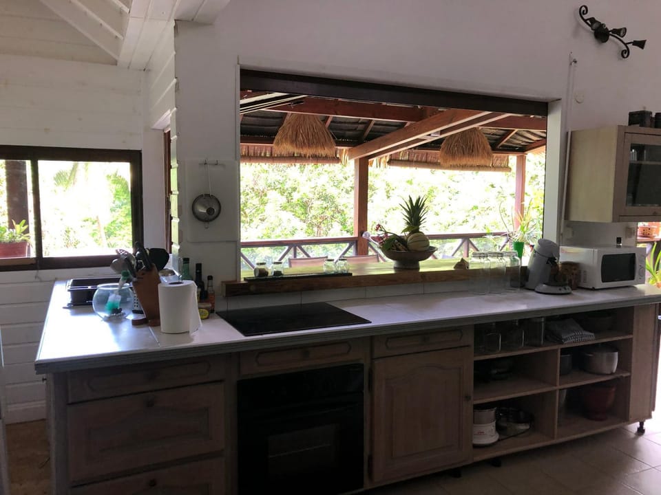 Excellent logement. Le chalet est au milieu de la végétation, avec un salon / cuisine ouvert sur la terrasse couverte, on vit sur l'extérieur ce qui est génial dans ce chalet. On s'y sent super bien, au calme, avec pour seuls bruits la nature. Il y a 3 autres chalets, tous occupés quand nous y étions mais on n'entend pas ou très peu les voisins. Et la terrasse et chambre sont sans vis à vis. L'emplacement aux Abymes est lui aussi idéal pour rayonner dans l'île en voiture, on est au centre de tout : à quelques minutes de Pointe à Pitre, et à moins d'une heure de tous les points de la Guadeloupe, que ce soit côté Basse ou Haute Terre. Et presque toujours à contre sens des bouchons. La propriétaire est très disponible en cas de besoin et pour partager son expérience de l'île. Bref un super choix.