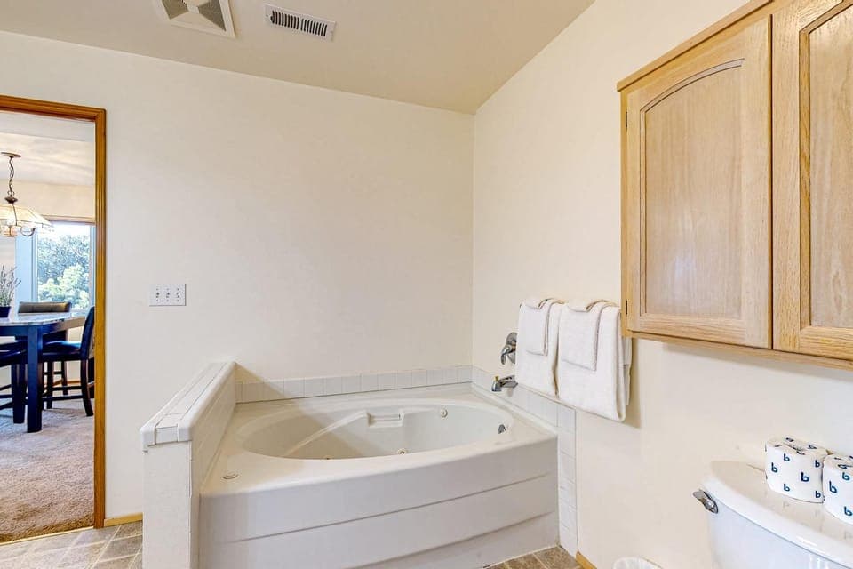 We arrived when it was dark. There were no lights on. The location description was lacking, and having to find the key box in the dark was a challenge. Some of the dishes were dirty, which was frustrating because we were charged a cleaning fee, and the shower took a very long time to warm up.