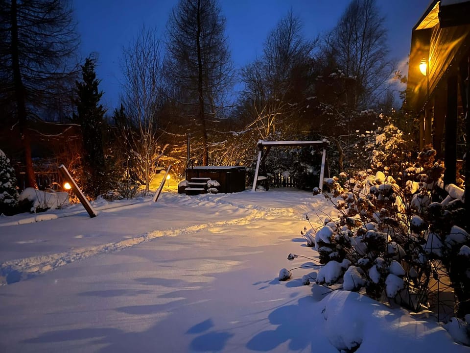 1.7 miles from Lubiatowo Beach in Kopalino, Dom Marzeń z jacuzzi pod gwiazdami provides accommodations with access to a hot tub.