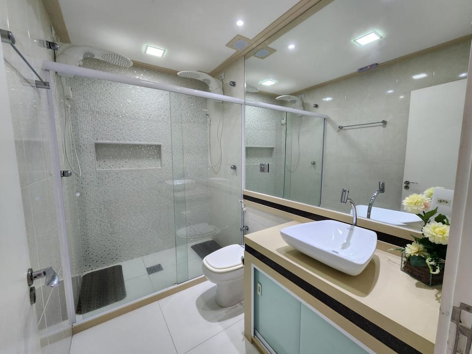 Apt com uma vista linda excelente localização de frente pra praia, tem sauna, piscina e praia particular, equipado com todos os eletrodomésticos novos, bem confortável, banheiro grande, lugar super tranquilo com segurança e porteiros atenciosos com certeza voltarei outras vezes.