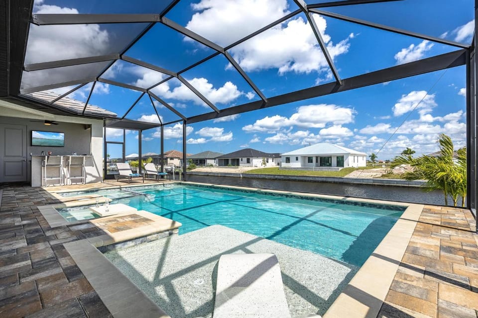 Nestled in Cape Coral, this House is perfect for your next vacation. Enjoy NEW EVERYTHING!! 4-bed 3 bath South Facing spill over spa pool. 2 king suites's top-rated amenities, including Air conditioning, Dryer and WiFi/Internet, and more.
