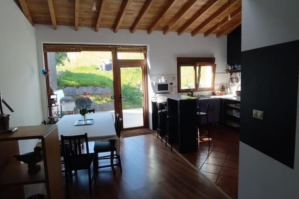La ubicación ideal, un pueblo tranquilo y precioso. La casa muy acogedora y con vistas al campo desde el salón-cocina. Muchos juguetes para los niños que han resultado muy útiles y una buhardilla con mirador increible.