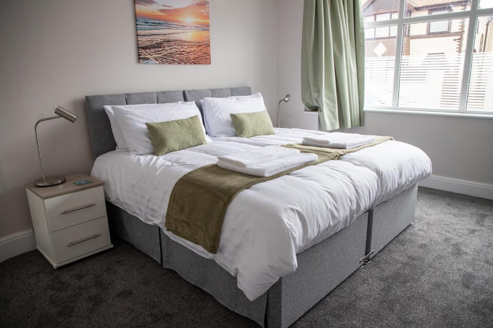 Walking distance to prom and Cleveleys. Close to trams and buses. Decor of lounge and kitchen nice and modern. Kitchen well stocked with plates glasses etc. Oven and microwave worked. Hot water. Shower was fine. Towels provided. When I had a few problems someone popped round quickly to see if they could help. Raised with owner they did refund my early check in fee.