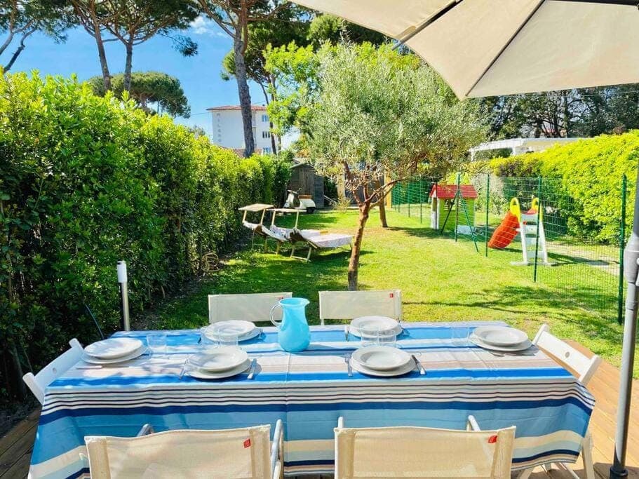 Schöner Garten ausgestattet mit riesigem Sonnenschirm, gemütlicher Aufenthaltsraum, große gut ausgestatte Küche. Super Lage, 2 Minuten zum Strand mit Strandbädern. Auch öffentlicher Strand mit Strandbar, Toiletten und Duschen in 400m Entfernung. 5 Minuten Entfernung zu Marina di Pietrasanta mit Geschäften, Restaurants und Supermärkten. In einer halben Stunde bis Stunde mit dem Auto in Lucca und Pisa. Wir waren begeistern und werden wieder kommen.