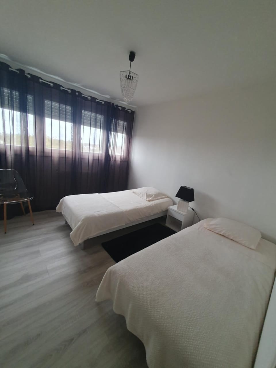 Appartement très propre et fonctionnel. Café et thé à disposition pour le petit déjeuner. Accueil très aimable du propriétaire lors de la remise des clés. Équipement très bien adapté à un séjour de quatre personnes. Vue dégagée côté cuisine et chambre 1, petit balcon côté chambre 2.