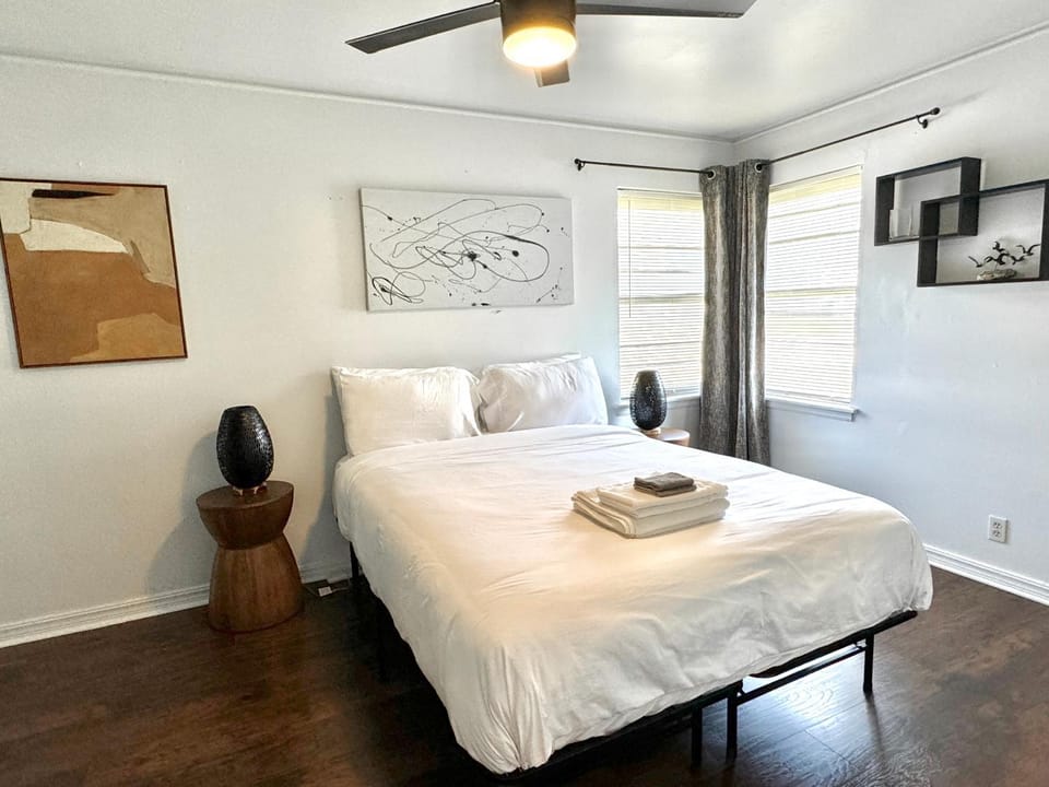 Indulge in a peaceful retreat at Retro Relax. Yard + Pets OK., our elegant House in Oklahoma City. Enjoy amenities including Air conditioning, Dryer and WiFi/Internet, and more.