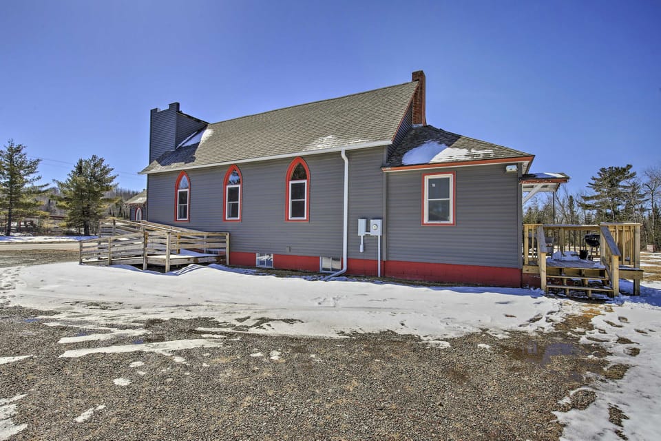 You'll get more than your typical Sunday service when you book this renovated church vacation rental! The 1940s pews have been replaced with a fully updated interior complete with 2 bedrooms + loft, 1.5 bathrooms, a full kitchen, and a cozy living space brimming with the comforts of home. Outdoor lovers will fall in love with all there is to do in the Hayward and Cable area including cross-country skiing, snowmobiling, mountain biking, and fishing at Silverthorn Lake Park just a few blocks away.