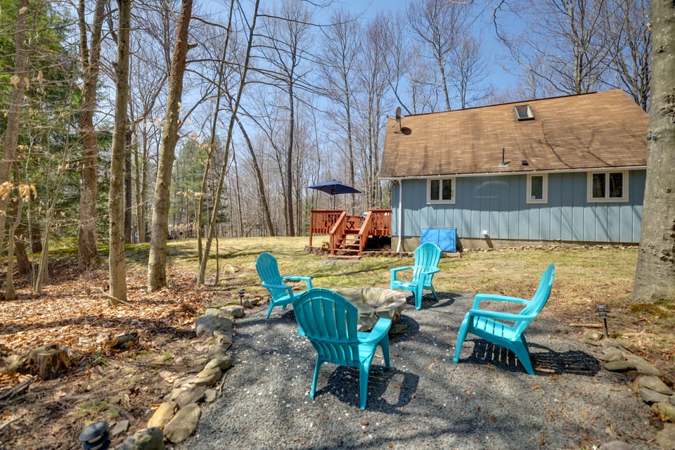 A fun-filled getaway awaits at this Pocono Lake vacation rental, with resort-style amenities, 2 bedrooms plus a loft to host your whole group, and a sunny deck. In the Arrowhead Lake neighborhood, you can grab a kayak and hop on the water or take a dip in the outdoor pool to get your fix of sunshine. The surrounding Pocono Mountains have prime skiing and hiking for a daytime adventure. Back at the 1-bath cabin, spend a quiet evening by the fire pit or stay inside for a family movie night.