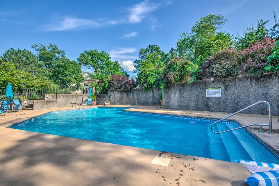 Yes, a swimming pool is available for use at Ozarks Vacation Rental Condo w/ Lake View!. Enjoy the water!