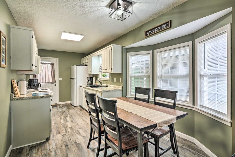 Cast your line, explore the natural wonders of Arkansas, and spend quality time with loved ones when you stay at this 'Brookie Inn' remodeled Flippin home. Featuring a spacious backyard with a fire pit, multiple outdoor living areas, and a stylish interior, this 2-bedroom, 2-bath vacation rental allows you to maximize relaxation during downtime. Head to the White River at Big Springs in Cotter, just 4 miles away, or venture to Bull Shoals Lake for even more opportunity for a prized catch!