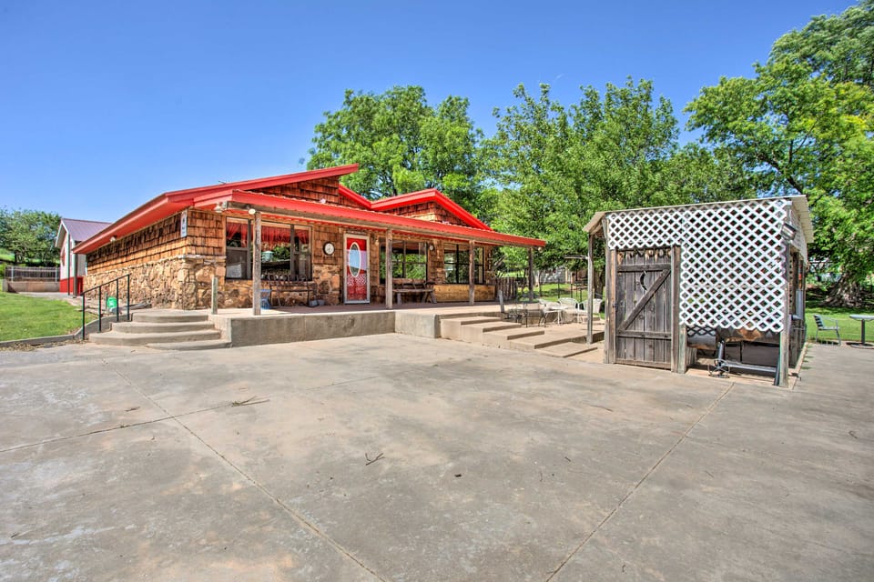 Filter out the distractions of everyday life when you choose this Butler vacation rental with stained-glass details, a cabin-like feel, and relaxing outdoor amenities. With community access to Foss Reservoir’s beach and boat ramp, this 3-bedroom, 2-bathroom escape is the ideal home base for avid fishers to thrive in. Not only are there museums and casinos to visit nearby, but there’s also a covered pergola, patio, front porch, and wood-burning stove on-site for complete days of relaxation.