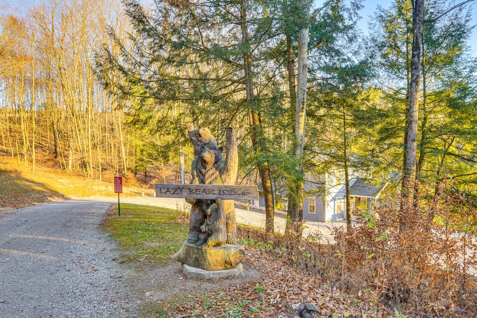 Surrounded by lush views of Elk State Forest, ‘Lazy Bear Lodge’ is a peaceful reprieve with must-have comforts! The 4-bedroom, 3-bath Benezette vacation rental is the perfect base, offering easy access to wineries, outdoor activities, and elk viewing. At day's end, enjoy pickleball, unwind with loved ones around the fire pit, or on the deck complete with a hot tub, grills, and dining area, which is perfect for wildlife spotting. Book today!
