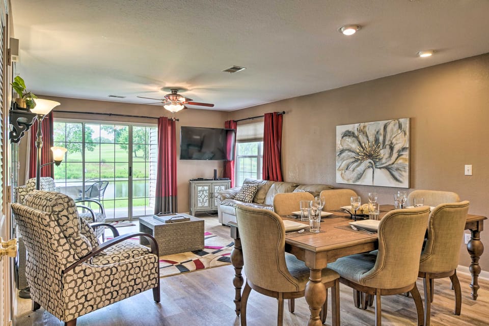 Resort Amenities | Furnished Patio w/ Golf Course Views | Free WiFi