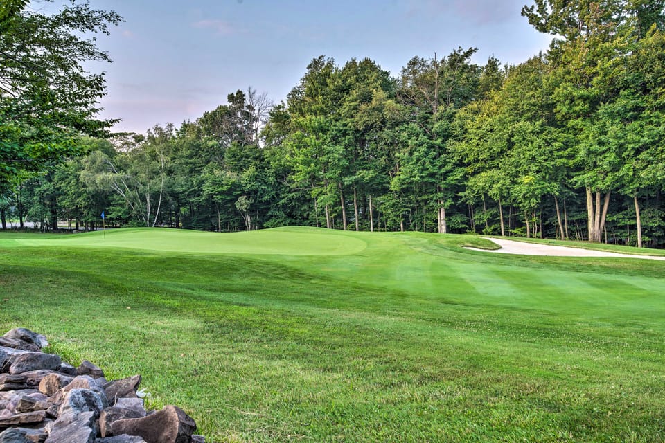 Grab your golf clubs, pack up the kids, and get ready for a fun-filled family getaway at this 3-bedroom, 2-bath Tobyhanna vacation rental! Nestled in the Pocono Farm Country Club, this cabin features a fully equipped kitchen, high-end wood accents, and a breezy balcony and deck. When you’re not hitting the greens, take advantage of community amenities like the on-site beach and outdoor pool. After fun-filled days, cook some steaks on the propane grill or roast s’mores over the fire pit.