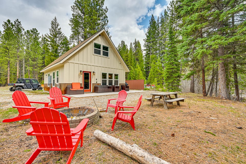 Wake up in Darby, MT — your base for the Bitterroot National Forest and the rugged Montana Rockies. The 2-bedroom, 1.5-bath vacation rental sits on the banks of the Nez Perce Fork, with private river access for sunny picnics or just soaking in the sounds of the current. When not at the water's edge, hike at Painted Rocks State Park, grill out on the patio, or wind down by the fire to trade stories.