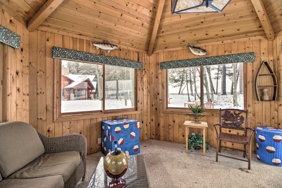 Book a stay at this luxurious chalet is Emily! ‘Ruth Lake Retreat' sits on a stunning lakefront lot with a private beach, dock, and fire pit. The 9,700 sq ft interior features 2 fireplaces, 7 flat-screen TVs, a pool table, and foosball. With ample accommodations, this peaceful vacation rental is the perfect spot for a family get-together you’ll never forget. Book your Minnesota lake escape today!