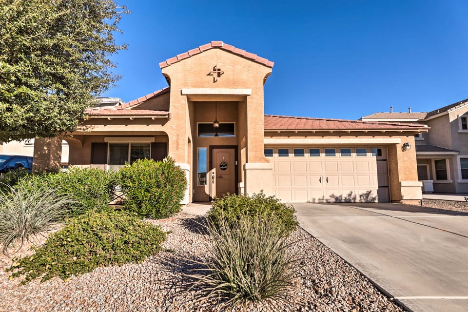 Your premier Arizona retreat awaits at this beautiful home in Maricopa! Boasting 2,150 square feet of space, a modern interior, and an unbeatable outdoor space, this 3-bedroom, 2-bathroom vacation rental is sure to supply maximum comfort for your group all weekend long. Relax by the pool, swim up to the on-site bar for a drink, then watch your favorite sports game on the outdoor Smart TV. When you’re not soaking up the sun at home, explore popular attractions or tee off at a nearby course.
