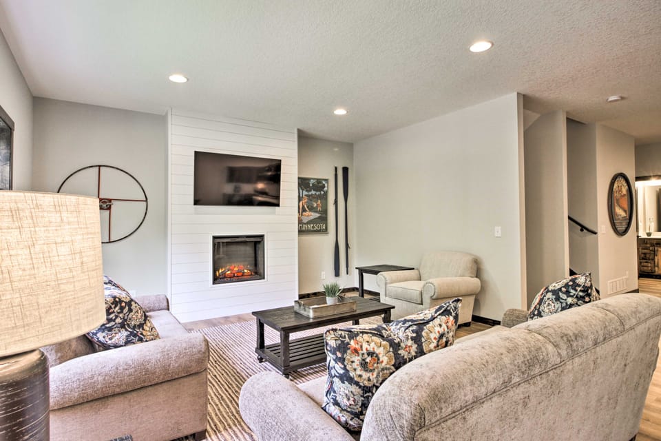 Book a trip that allows you to spend your days on the links, soak up the sun while boating, or explore nature on hiking trails. This Nisswa destination offers all that and more with some of the top attractions just minutes from this 5-bedroom, 5-bathroom vacation rental townhome. Choose between strolling through downtown Nisswa just 4 miles away, or head 300 feet away to Gull Lake before returning home to grill out, relax around the fire pit, or hang out with your companions in the living room.