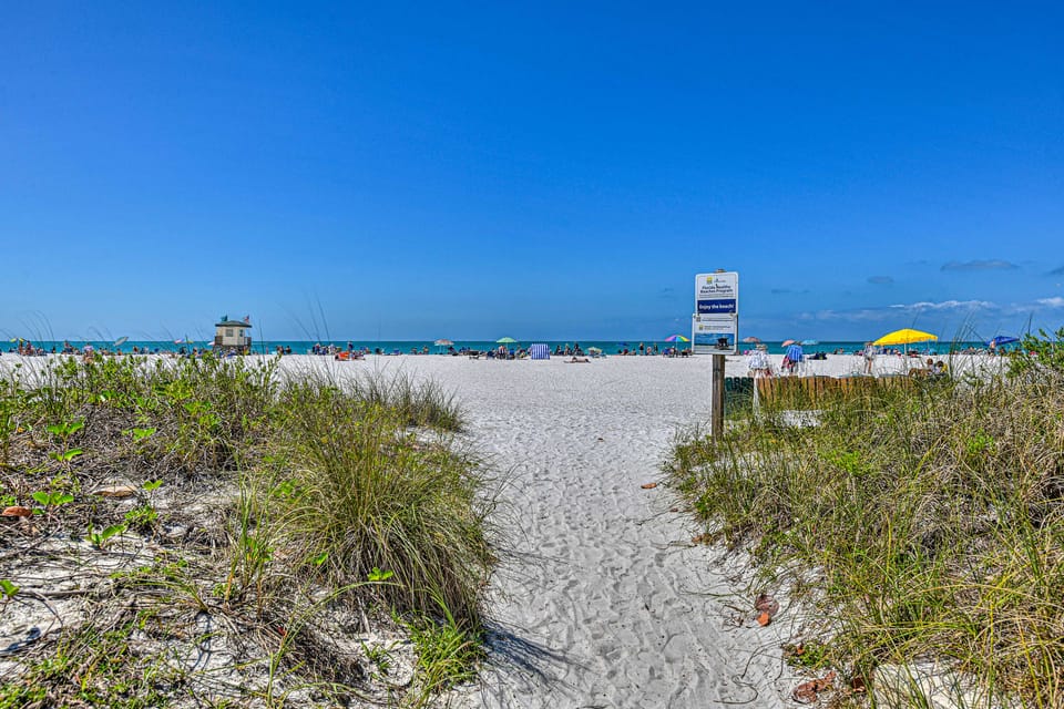 SAND & SUN: Beach access (across the street), Lido Key Beach (0.3 miles), Siesta Key Beach (9.9 miles), Crescent Beach (10.6 miles), Beer Can Island (12.6 miles), Coquina Beach (13.0 miles), Turtle Beach (13.3 miles)
