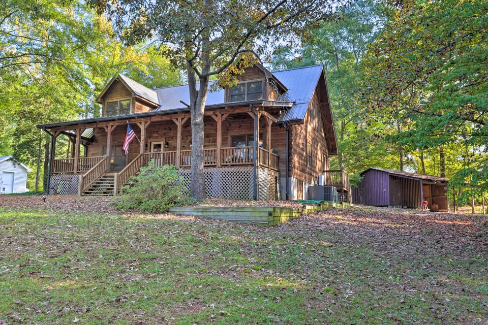 Get away from it all with this quiet cabin in Tignall! This 4-bedroom, 2.5-bath vacation rental is right on the banks of Strom Thurmond Lake and boasts easy access to the water thanks to the private dock and a boat ramp just a half mile away. Unwind in the rustic-yet-refined interior that comes equipped with authentic cabin décor, a gas fireplace, and a fully equipped kitchen to make you feel right at home! Lovers of lake living should look no further for their next Georgia getaway!